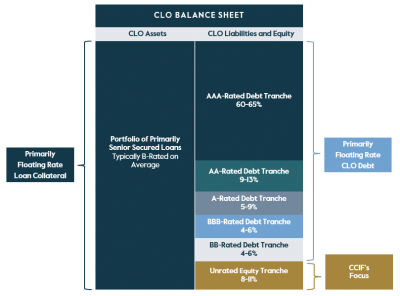 | • | Subordinated Securities . CLO equity and junior debt securities are subordinated to more senior tranches of CLO debt. CLO equity and junior debt securities are subject to increased risks of default relative to the holders of superior priority interests in the same CLO. In addition, at the time of issuance, CLO equity securities are under-collateralized in that the face amount of the CLO debt and CLO equity of a CLO at inception exceed its total assets. The Fund will typically be in a subordinated or first loss position with respect to realized losses on the underlying assets held by the CLOs in which we are invested. |