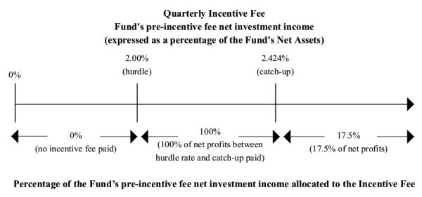 | • | The Adviser’s Incentive Fee Risk . The Investment Advisory Agreement entitles the Adviser to receive incentive compensation on income regardless of any capital losses. In such case, the Fund may be required to pay the Adviser incentive compensation for a fiscal quarter even if there is a decline in the |